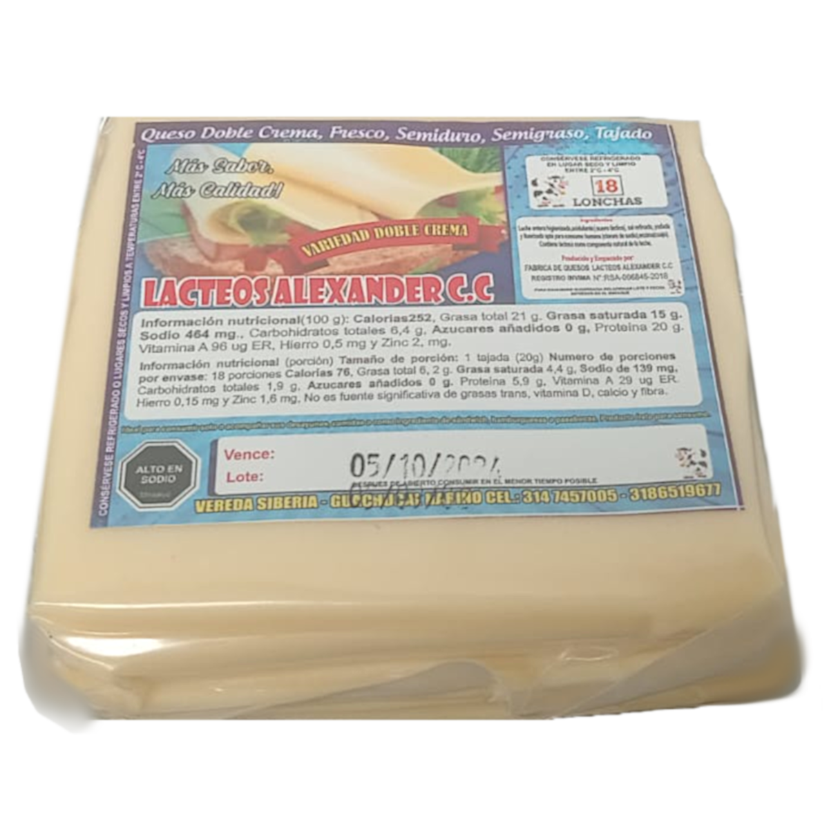 Queso Doble Crema Tajado